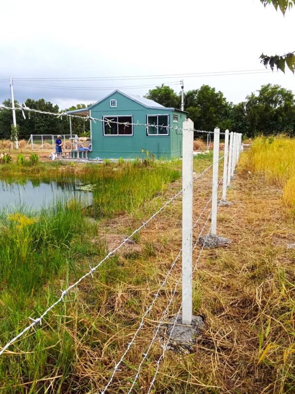 รั้วลวดหนาม มีลักษณะเป็นเสาคอนกรีต ขุดหลุม ตั้งเสา เทปูน ไม่ใช้เสาไม้ จึงมีความคงทน และอายุการใช้งานที่ยาวนาน