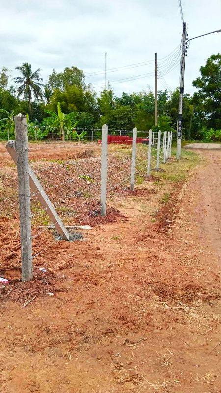 รั้วลวดหนาม มีลักษณะเป็นเสาคอนกรีต ขุดหลุม ตั้งเสา เทปูน ไม่ใช้เสาไม้ จึงมีความคงทน และอายุการใช้งานที่ยาวนาน