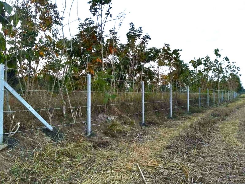 รั้วลวดหนาม มีลักษณะเป็นเสาคอนกรีต ขุดหลุม ตั้งเสา เทปูน ไม่ใช้เสาไม้ จึงมีความคงทน และอายุการใช้งานที่ยาวนาน